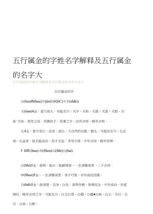 姓名,不僅是身份的象征,更是伴隨一生的符號(hào),蘊(yùn)含著深刻的文化內(nèi)涵與命運(yùn)密碼。在姓名學(xué)中,筆畫(huà)數(shù)與五行屬性密切相關(guān),影響著個(gè)人的性格、健康和運(yùn)勢(shì)。本文將聚焦于8畫(huà)屬金的漢字,從姓名學(xué)的角度,深入剖析其吉兇含義、五行調(diào)和原則,以及如何巧妙運(yùn)用,以期為讀者提供專業(yè)、精準(zhǔn)的起名參考。