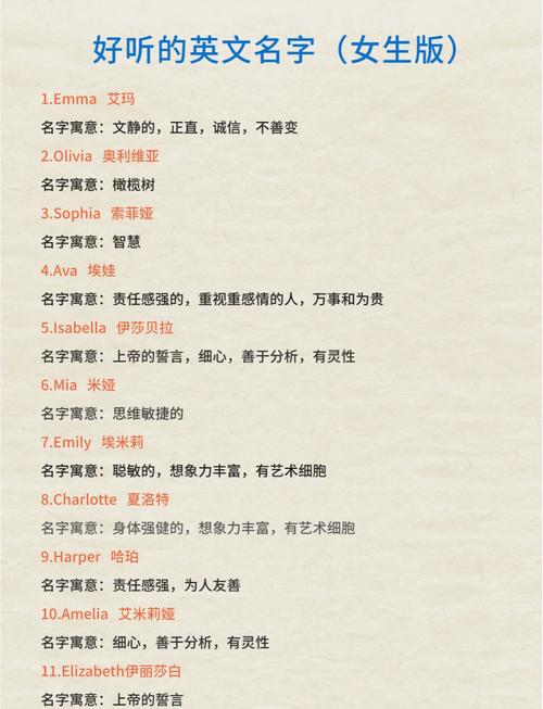 英文名字往往帶有濃厚的文化烙印,反映著不同歷史時(shí)期的社會(huì)風(fēng)尚和文化價(jià)值觀。一個(gè)名字的流行程度,經(jīng)常與當(dāng)時(shí)的社會(huì)事件、名人效應(yīng),甚至是文學(xué)作品有關(guān)。例如,在維多利亞時(shí)代,以“Victoria”命名的女孩數(shù)量激增,正是受到維多利亞女王的影響。追溯名字的文化溯源,能夠幫助我們更好地理解名字的內(nèi)涵和時(shí)代背景。一些名字本身就帶有特定的含義。比如,“Grace”寓意著優(yōu)雅和恩典;“Faith”則象征著忠誠和信仰。了解這些含義,有助于我們更精準(zhǔn)地把握名字所傳遞的信息。