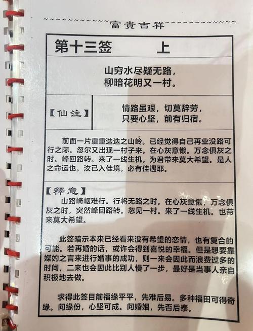 姻緣美滿:這句簽詩(shī)預(yù)示著你將擁有一個(gè)美滿的婚姻。你會(huì)和你的愛人恩恩愛愛,白頭偕老。