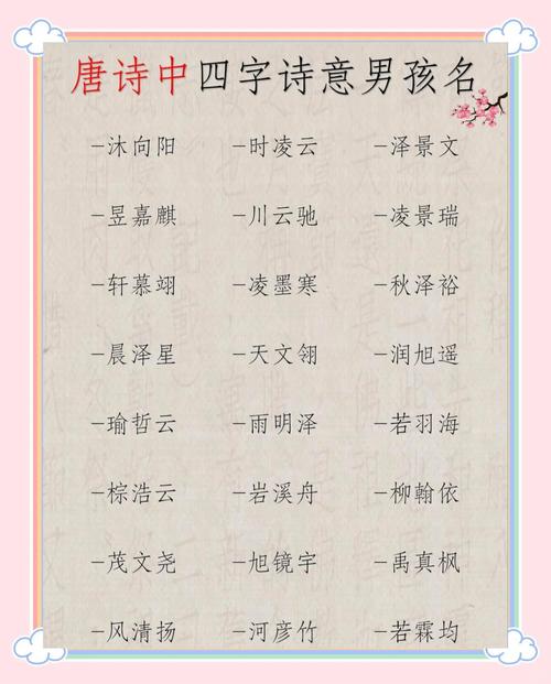 本文將以“寶寶起名詩詞大全集四字”為題,探討如何從詩詞中選取合適的字,組合成寓意美好、音韻和諧的四字名字,并提供一些實例,供各位父母參考。