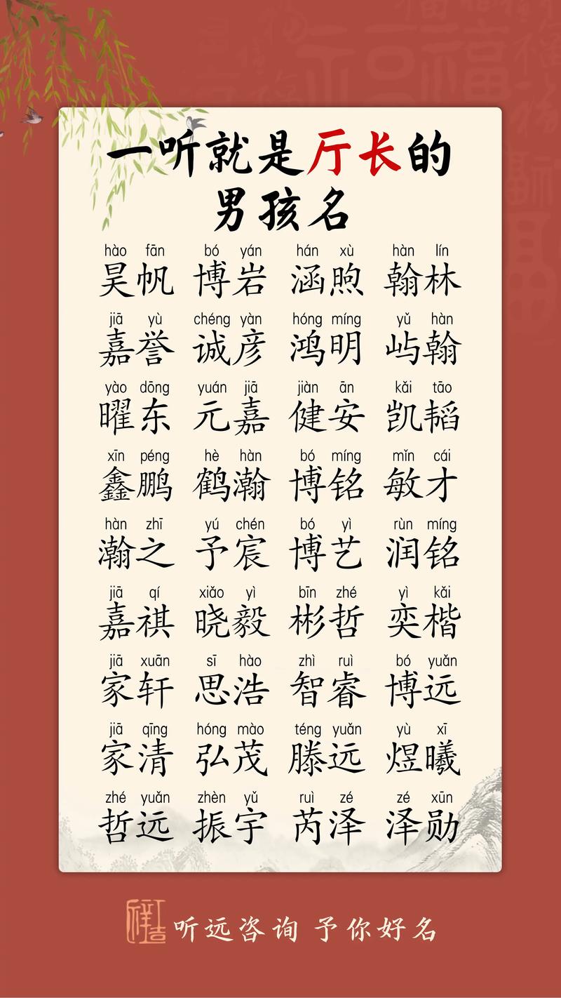 同音避免,寓意良好:如姓“林”,可取“銘林”,寓意“銘記歷史,蔭庇后世”。