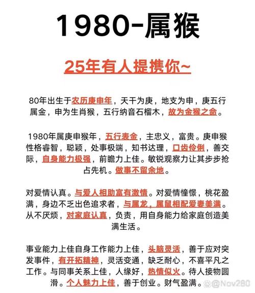在感情生活中,屬猴者同樣面臨挑戰(zhàn)。1980年出生的屬猴者渴望激情與浪漫,但也可能因為對自由的向往而讓自己在感情中游走。他們需要找到一個能夠理解和包容他們個性的伴侶,才能建立持久的關系。通過相互理解與支持,屬猴者可以在情感的道路上走得更加穩(wěn)健。