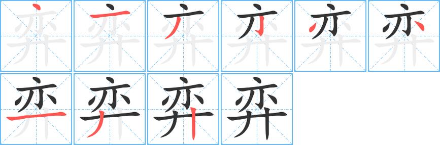 《康熙字典》筆畫: 這是最常用的計(jì)算方式,以《康熙字典》為準(zhǔn)。“奕”字,按照《康熙字典》的部首查法,屬于大部,計(jì)為9畫。