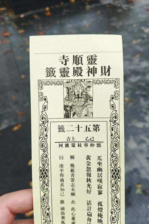 在靈順?biāo)仑?cái)神殿中,第六十二簽可是大有玄機(jī)。這簽文曰:“財(cái)源廣進(jìn),福運(yùn)盈門(mén)。金雞報(bào)曉,富貴雙全。”短短幾句,道盡了財(cái)運(yùn)亨通、福運(yùn)齊來(lái)的美好景象。