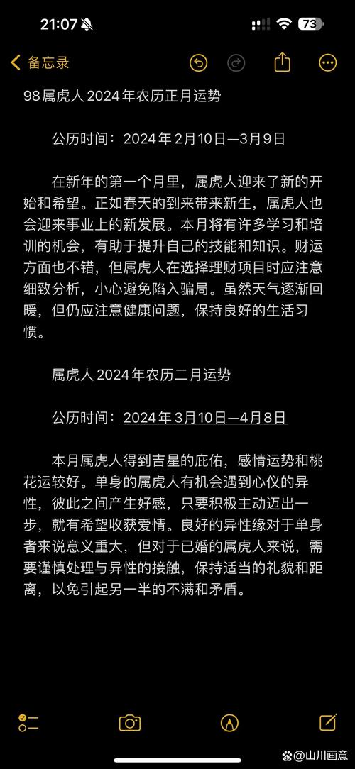 在職業(yè)發(fā)展上,98年農(nóng)歷6月的虎女往往能抓住機(jī)會,勇敢追求自己的理想。在創(chuàng)意、銷售、管理等領(lǐng)域,她們能夠利用自身的優(yōu)勢取得顯著成就。隨著職場競爭的加劇,她們也面臨著一定的挑戰(zhàn)。保持持續(xù)的學(xué)習(xí)與成長,將是她們成功的關(guān)鍵。