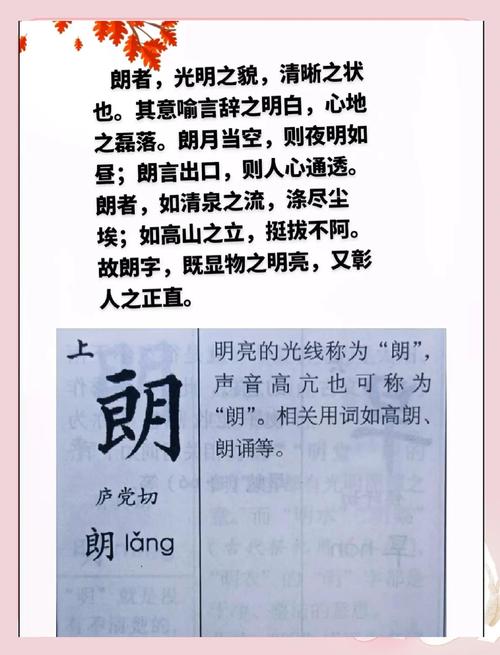 這些衍生的字眼同樣具有美好的寓意,可以與“朗”字巧妙結(jié)合,形成更具個(gè)性化和創(chuàng)意性的名字。例如,可以選用“照朗”、“輝朗”、“悅朗”等名字,以表達(dá)更加豐富的內(nèi)涵和期許。