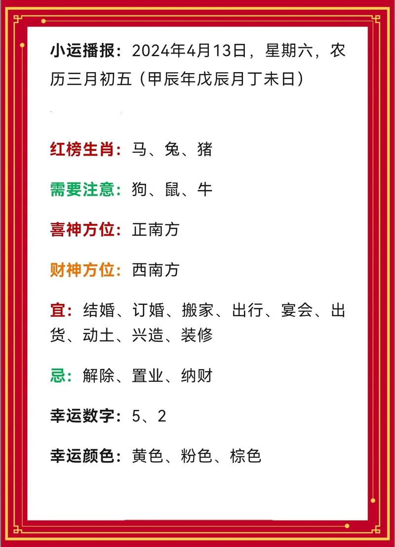 4、四月十三日:甲午日,五行屬火,大利搬家。