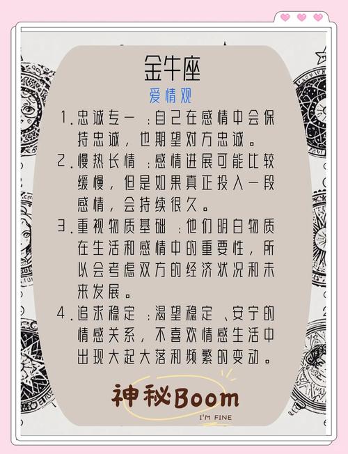 健康方面,金牛座需要注意消化系統(tǒng)問(wèn)題。避免暴飲暴食,選擇健康清淡的食物。同時(shí),保證充足的睡眠和鍛煉,將有助于增強(qiáng)你的免疫力,預(yù)防疾病。