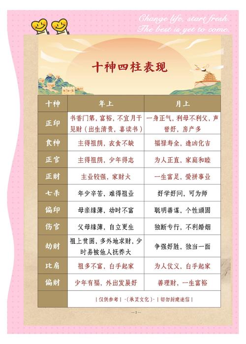 十神對命運的影響十神的排列不僅僅是命理學的技術(shù)操作,它直接影響到個體的性格特征和人生軌跡。比肩和劫財代表競爭和斗志,食神和傷官體現(xiàn)創(chuàng)造力和表達能力,正財和偏財則與財富運勢緊密相關(guān)。了解這些排列,可以幫助我們更好地把握個人的優(yōu)勢和挑戰(zhàn),從而做出更加明智的決策。