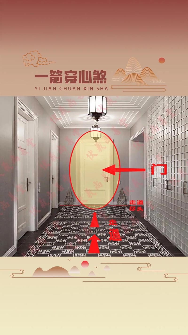 在門與走廊之間掛上一幅寓意吉祥的掛畫,可以起到化煞的作用。