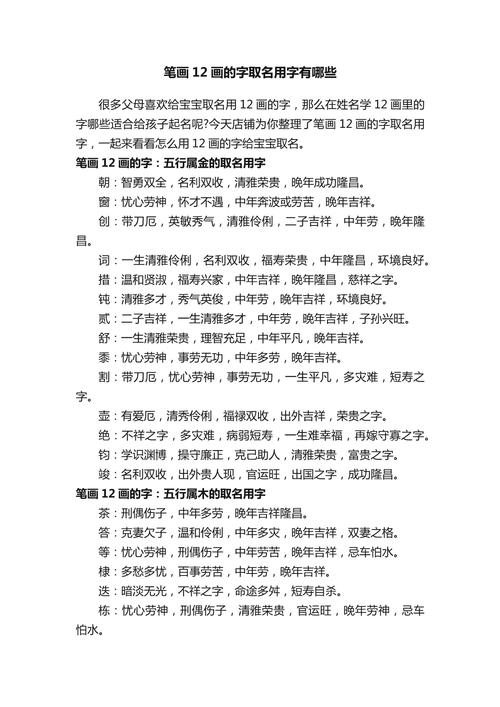 姓名,不僅僅是一個符號,更蘊含著深厚的文化內(nèi)涵與命理玄機。尤其在姓名學中,字的筆畫數(shù)被賦予了特殊的意義,影響著個人的性格、運勢和發(fā)展。本文將聚焦于姓名學中筆畫為12畫的漢字,探討其象征意義及其對個人命運的潛在影響,幫助讀者更深入地了解自身姓名的潛在力量。