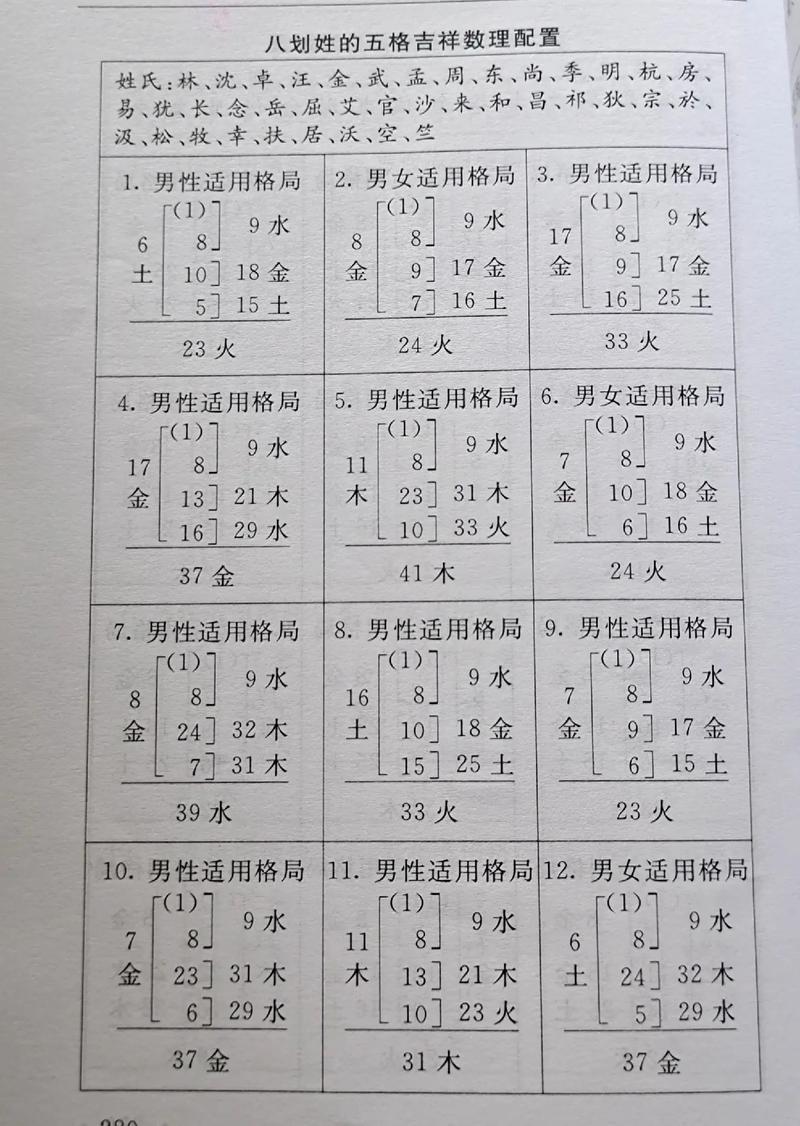 8畫字的五行屬性與基礎(chǔ)吉兇