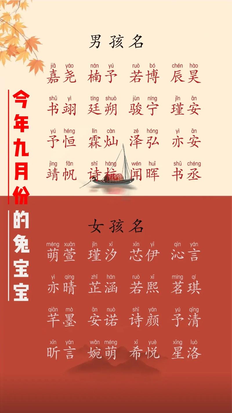 帶“月”、“夕”的字: 兔子與月亮有關聯(lián),寓意美好浪漫。如:朗、朔、朦、夕、夢等。