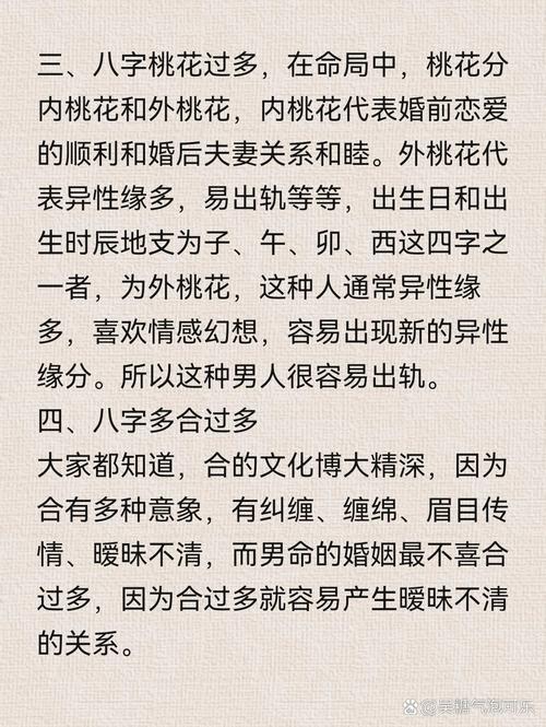桃花是一種五行吉星,代表異性緣和感情運勢。當一個男人的八字中桃花過旺時,就容易招惹爛桃花,導(dǎo)致感情糾葛不斷,最終走向出軌的道路。