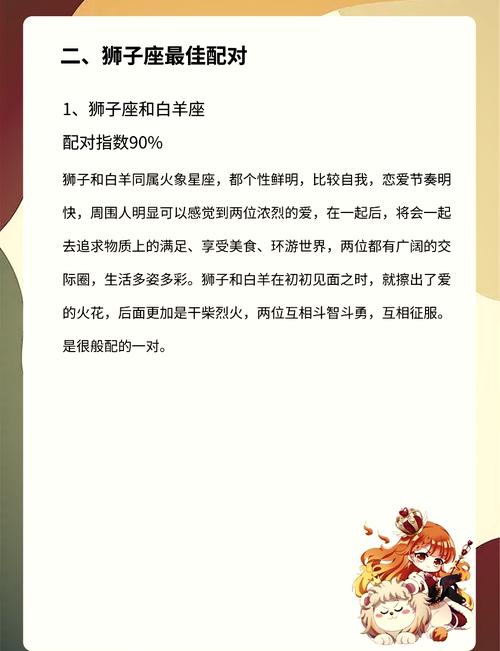 白羊座和獅子座,這兩個(gè)同屬火象星座的伙伴,能量十足,魅力非凡。他們是否天生契合,還是注定成為宿敵?讓我們深入探究他們的配對指數(shù)。