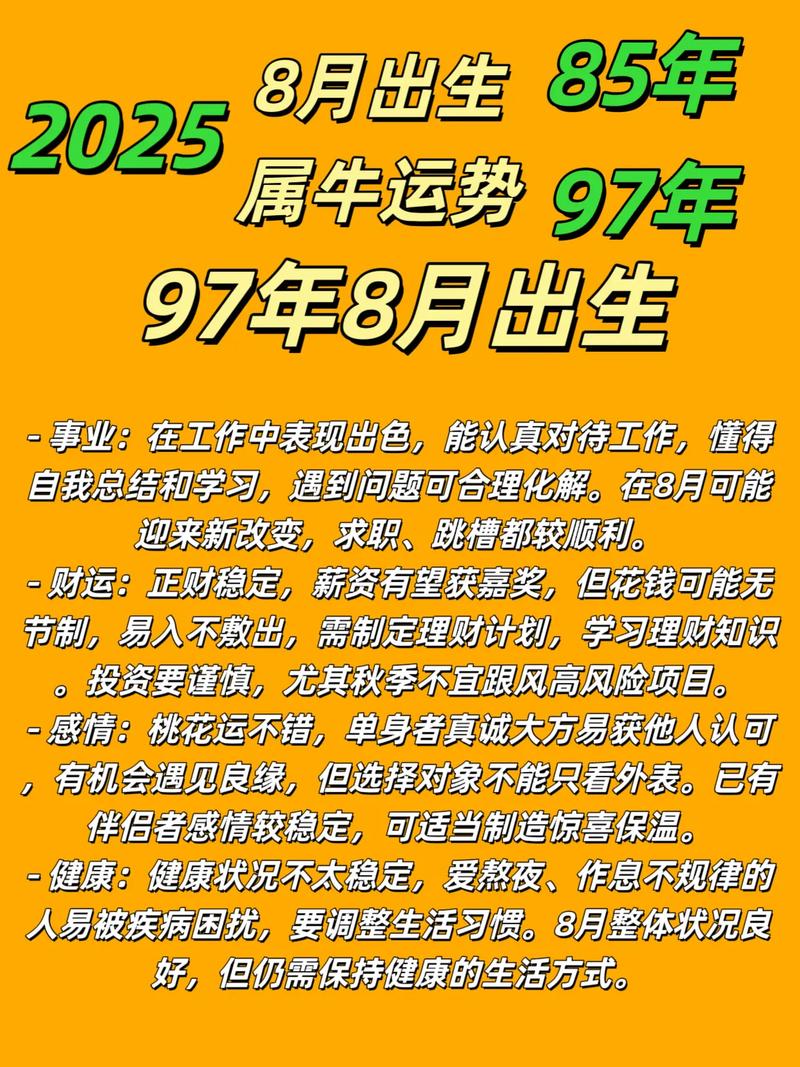 希望這篇文章能為你揭示八月出生屬牛人的命運(yùn)之謎,讓你對(duì)自己的未來(lái)充滿信心與期待!
