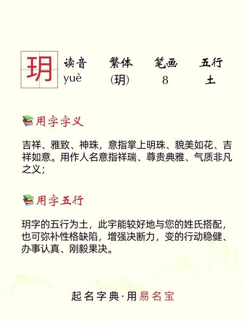 具體到“以玥”,需要根據(jù)具體筆畫數(shù)來分析其五行屬性,再結(jié)合生辰八字進(jìn)行更全面的判斷。但通常來說,“以”字五行屬土或水,而“玥”字五行屬土或金的可能性較高。