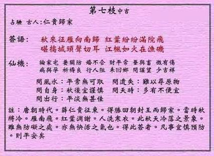 黃大仙靈簽第7簽解簽大全 解簽書(shū)
