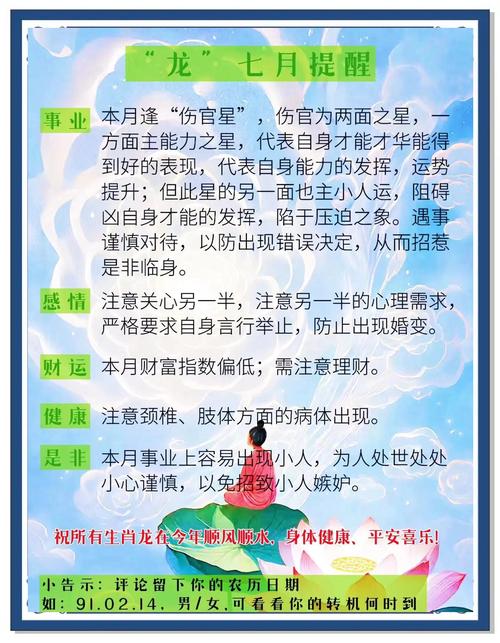 :生肖龍?jiān)?月份的運(yùn)勢總體來說是比較不錯(cuò)的,他們需要好好把握這個(gè)機(jī)會(huì),在事業(yè)、財(cái)運(yùn)、感情和健康等方面取得更大的進(jìn)步。