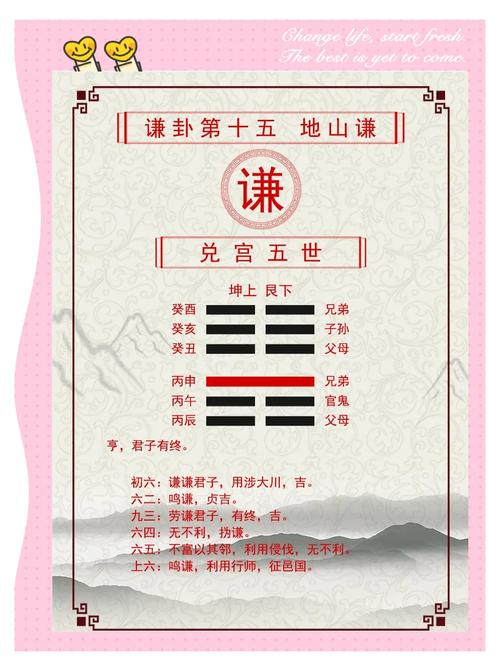 謙卦六爻皆吉并非偶然,而是與謙卦的卦象、卦德以及爻位之間的相互作用密切相關(guān)。謙卦所蘊含的謙虛之道,不僅是中華民族的傳統(tǒng)美德,更是現(xiàn)代社會所需要的一種重要品質(zhì)。在競爭日益激烈的今天,保持謙虛的態(tài)度,能夠讓我們更好地適應(yīng)環(huán)境,贏得機(jī)遇,最終取得成功。學(xué)習(xí)和領(lǐng)悟謙卦的精髓,有助于我們提升個人修養(yǎng),促進(jìn)社會和諧,實現(xiàn)可持續(xù)發(fā)展。謙卦的智慧,將繼續(xù)在現(xiàn)代社會中發(fā)揮重要的作用,指引我們走向更加美好的未來。