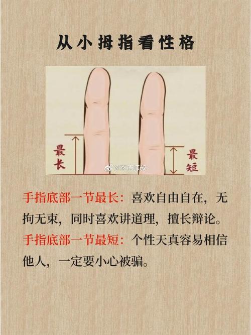 當(dāng)我們將拇指與小指進(jìn)行對(duì)比時(shí),不難發(fā)現(xiàn)二者各有千秋,無(wú)法簡(jiǎn)單地評(píng)判哪一個(gè)更為精準(zhǔn)。拇指強(qiáng)調(diào)的是個(gè)人的內(nèi)在力量和意志,而小指則關(guān)注外在的人際交往與情感表達(dá)。若要全面了解一個(gè)人的命運(yùn)軌跡,我們應(yīng)該綜合考慮這兩者的信息。