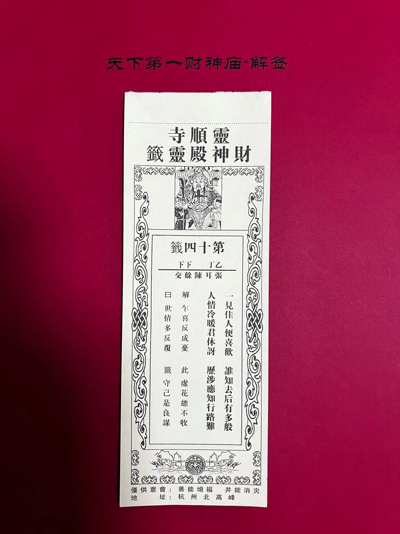 福德老爺,作為中國傳統(tǒng)信仰中的一位重要神只,象征著福氣與財富。他的靈簽被眾多信徒視為指導(dǎo)人生的重要工具,其中第十四簽尤為特殊,承載著豐富的寓意和深邃的智慧。本文將深入解讀福德老爺靈簽第十四簽的內(nèi)容與意義,幫助讀者更好地理解和運用這一古老的智慧。