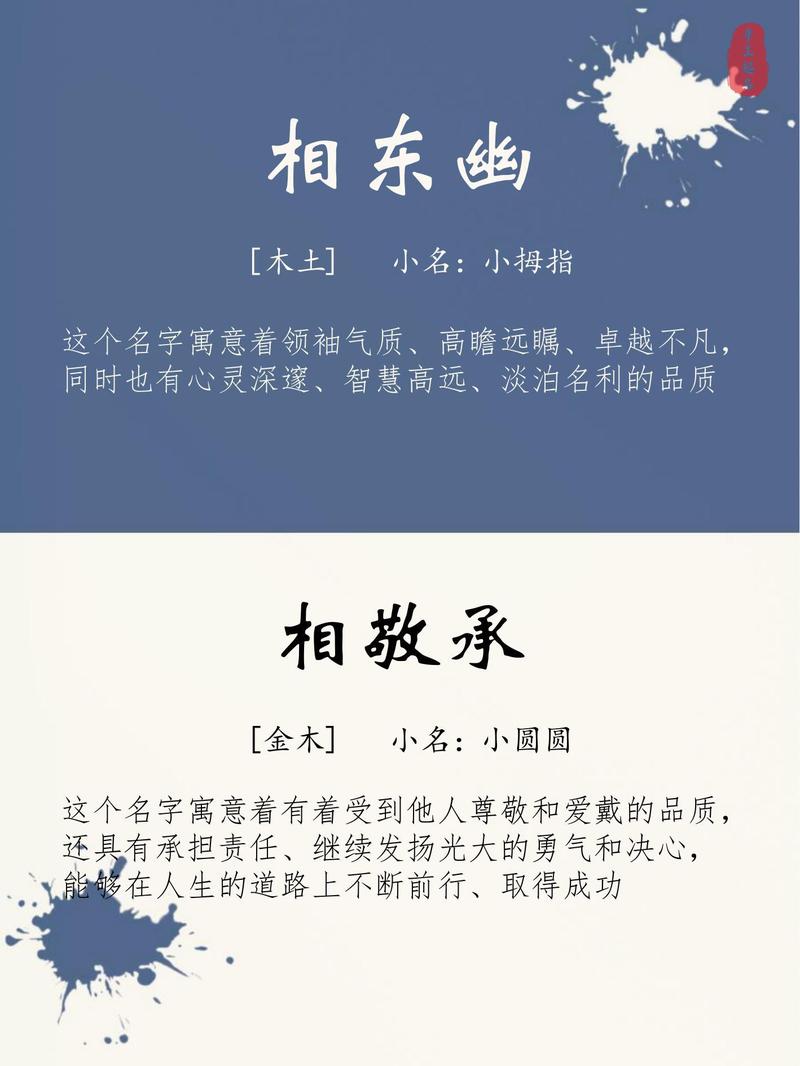 如何選擇吉祥的“相”字名字選擇一個合適的名字,不僅要考慮“相”字的吉兇,還需要綜合考慮名字的整體意境和音韻美。建議家長們在給男孩命名時,可以參考命理師的建議,結(jié)合八字分析,挑選出寓意吉祥且符合個人命理的名字。也可以借鑒傳統(tǒng)的命名方法,避免與不吉利的字搭配,從而最大程度地發(fā)揮“相”字的積極作用。