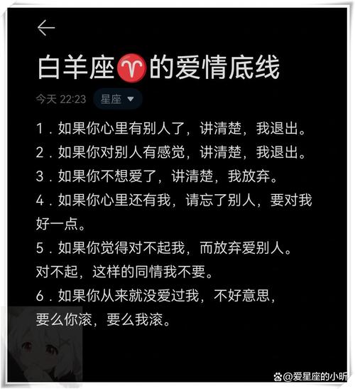 白羊座女人以其敢愛敢恨的特質(zhì)著稱,她們的愛情底線并非傳統(tǒng)意義上的模糊界限,而是建立在堅固的原則和信念之上。她們的內(nèi)心像是一片火焰,燃燒著對真摯和激情的渴望。那么,究竟白羊座女人在愛情中有哪些不可逾越的底線呢?