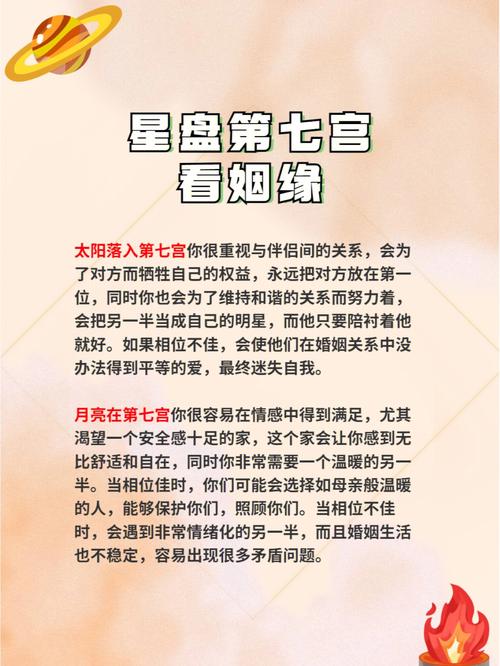 七宮的星座位置也同樣重要。比如,七宮位于白羊座的男性可能會傾向于主動追求和挑戰(zhàn)婚姻中的問題,而七宮位于天蝎座的男性則可能會經(jīng)歷更深層次的情感沖突和轉(zhuǎn)變。每個星座在七宮中的表現(xiàn),都能揭示出個人在婚姻中的不同側(cè)面和體驗。