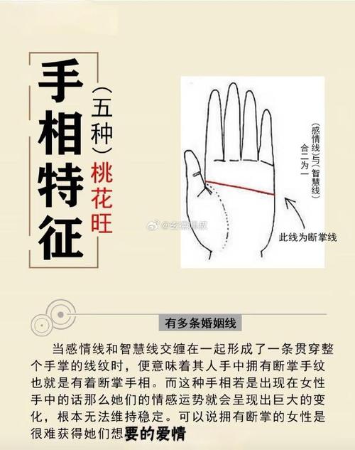 在古老的相術(shù)中,手相被認(rèn)為是一種揭示命運(yùn)和性格的重要工具。而在眾多手相特征中,桃花旺的女性手相尤為引人矚目。桃花旺不僅象征著愛情和桃花運(yùn),更是一種魅力的體現(xiàn),吸引著無數(shù)關(guān)注的目光。