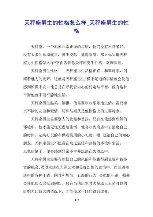 天秤座男孩的魅力與挑戰(zhàn)天秤座男孩以其獨(dú)特的外貌、社交魅力和公平理智的性格特點(diǎn),給人留下深刻的印象。他們在追求個(gè)人和諧與職業(yè)成功的過程中,展現(xiàn)了出色的能力和魅力。他們也面臨著如何在保持理智和解決沖突中找到平衡的挑戰(zhàn)。了解這些特點(diǎn),可以幫助你更好地與天秤座男孩相處,并在各類關(guān)系中建立更加和諧的互動(dòng)。