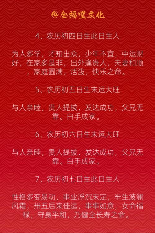 在浩瀚的星空下,農(nóng)歷5月初四出生的人仿佛注定要在命運的洪流中舞動。這個日期不僅僅是時間的標記,更是宇宙能量的集中體現(xiàn)。探索這一獨特命運的奧秘,能讓我們揭示出隱藏在生命背后的深層意義。