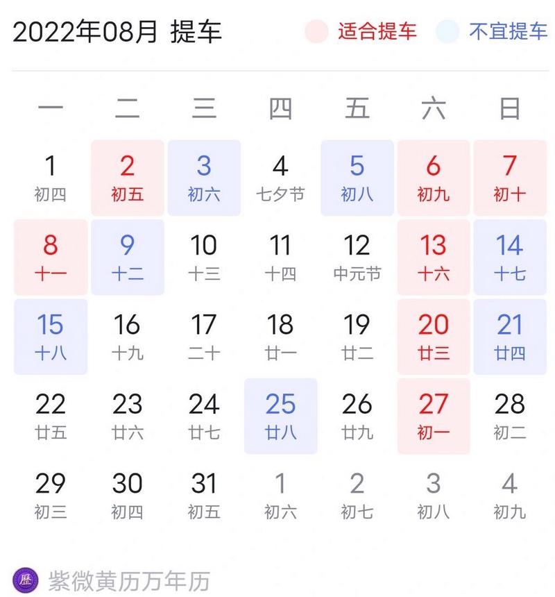 二0一九年7月份提車吉日 二零二二年三月份提車吉日有哪些