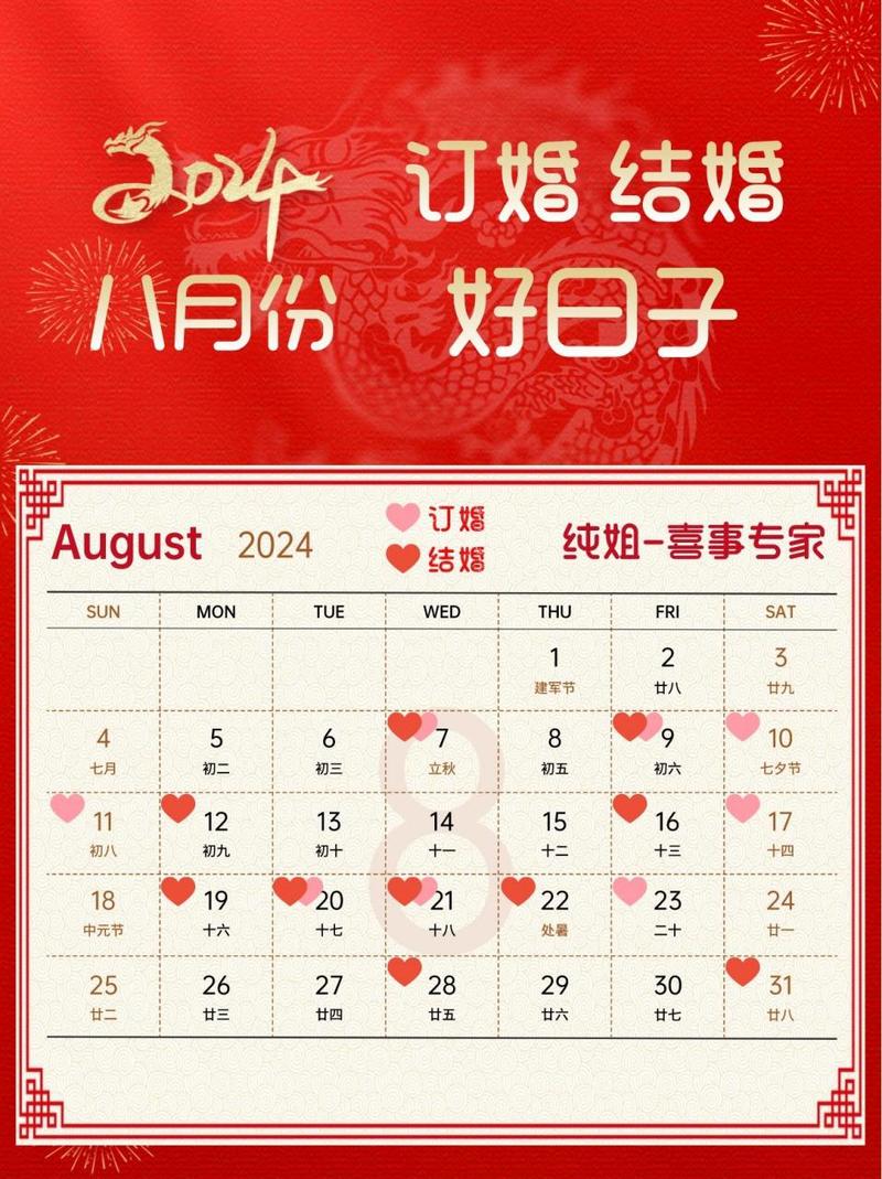 選擇八月定婚的吉日,需要綜合考慮傳統(tǒng)文化、個(gè)人命理以及現(xiàn)代社會(huì)的實(shí)際因素,確保新人在良辰吉日步入婚姻的殿堂,開啟幸福美滿的新生活。