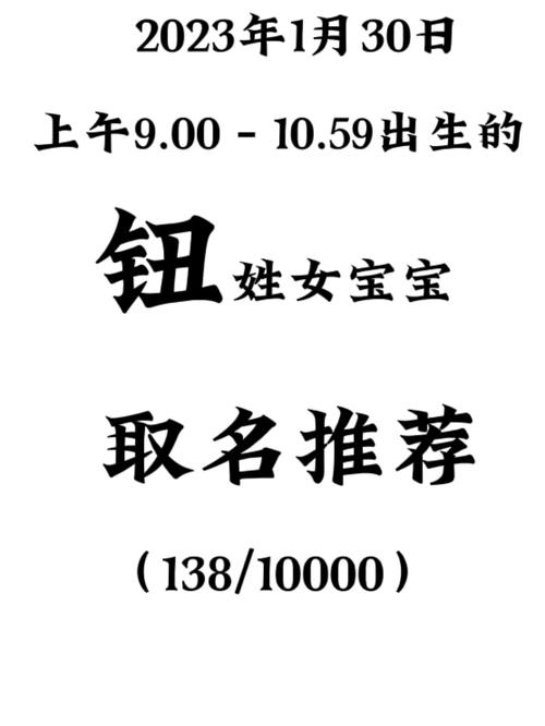 文化底蘊(yùn):姓名的象征意義在中國,姓名往往蘊(yùn)含豐富的文化寓意。鈕姓源遠(yuǎn)流長,其姓氏的獨(dú)特性為名字的選擇增添了不少難度。家長在為女孩起名時,可以從古詩詞、歷史人物或傳統(tǒng)美德中尋找靈感。例如,可以選擇“詩”、“雅”、“慧”等字眼,體現(xiàn)女孩的智慧與優(yōu)雅。