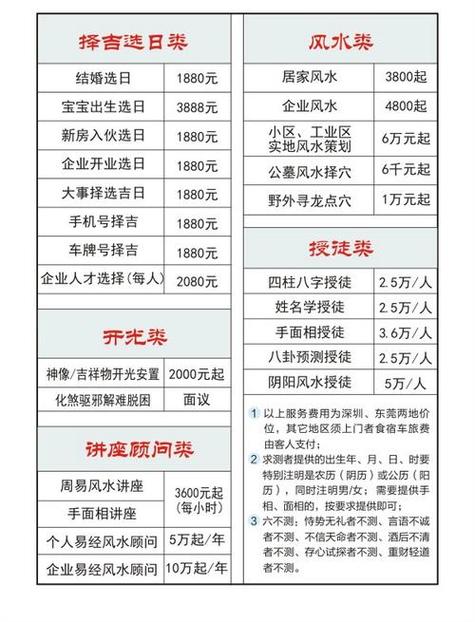 市場(chǎng)價(jià)格對(duì)比:選擇合適的風(fēng)水師在選擇風(fēng)水師時(shí),建議了解市場(chǎng)的收費(fèi)水平,避免過(guò)高或過(guò)低的收費(fèi)陷阱。市場(chǎng)上的風(fēng)水師收費(fèi)差異較大,通常與其專業(yè)背景、經(jīng)驗(yàn)以及服務(wù)范圍相關(guān)。選擇經(jīng)驗(yàn)豐富、口碑良好的風(fēng)水師可以確保服務(wù)質(zhì)量,避免因?yàn)閮r(jià)格便宜而導(dǎo)致服務(wù)效果不佳的情況。