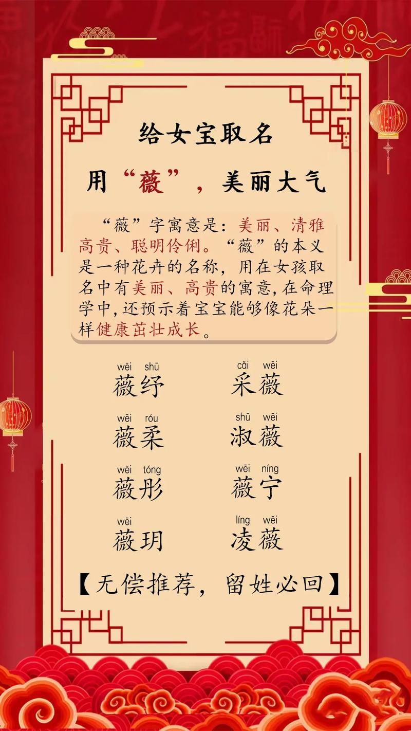 在命名時,結(jié)合生肖特性也是非常重要的一環(huán)。鼠寶寶通常被認為聰明、靈活,能夠適應各種環(huán)境。在選擇名字時,可以考慮與智慧、靈動相關(guān)的字眼。例如,將“薇”與“智”、“靈”等字結(jié)合,如“薇智”或“薇靈”,不僅可以突顯寶寶的聰慧特質(zhì),還能提升名字的整體氣質(zhì),給人留下深刻的印象。