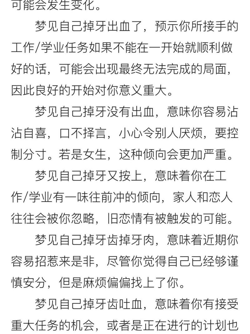 下牙代表著家庭和基礎。吐出下牙暗示著家庭或感情生活的動蕩,可能是由于關系破裂或財務困難。