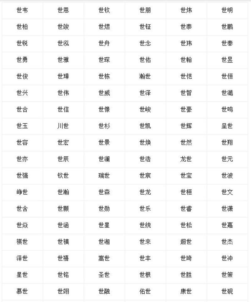 世字適用于絕大多數(shù)姓氏,如: