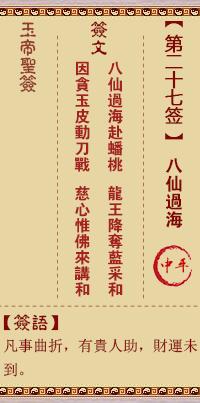 老君靈簽第二十七簽 關(guān)帝靈簽二十七簽