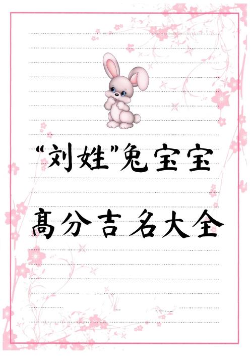 中國傳統(tǒng)文化中,兔寓意著吉祥、純潔、美麗。為兔年出生的劉姓寶寶取名,既要符合劉姓的姓氏特質(zhì),又要體現(xiàn)兔子的靈動和美好寓意。