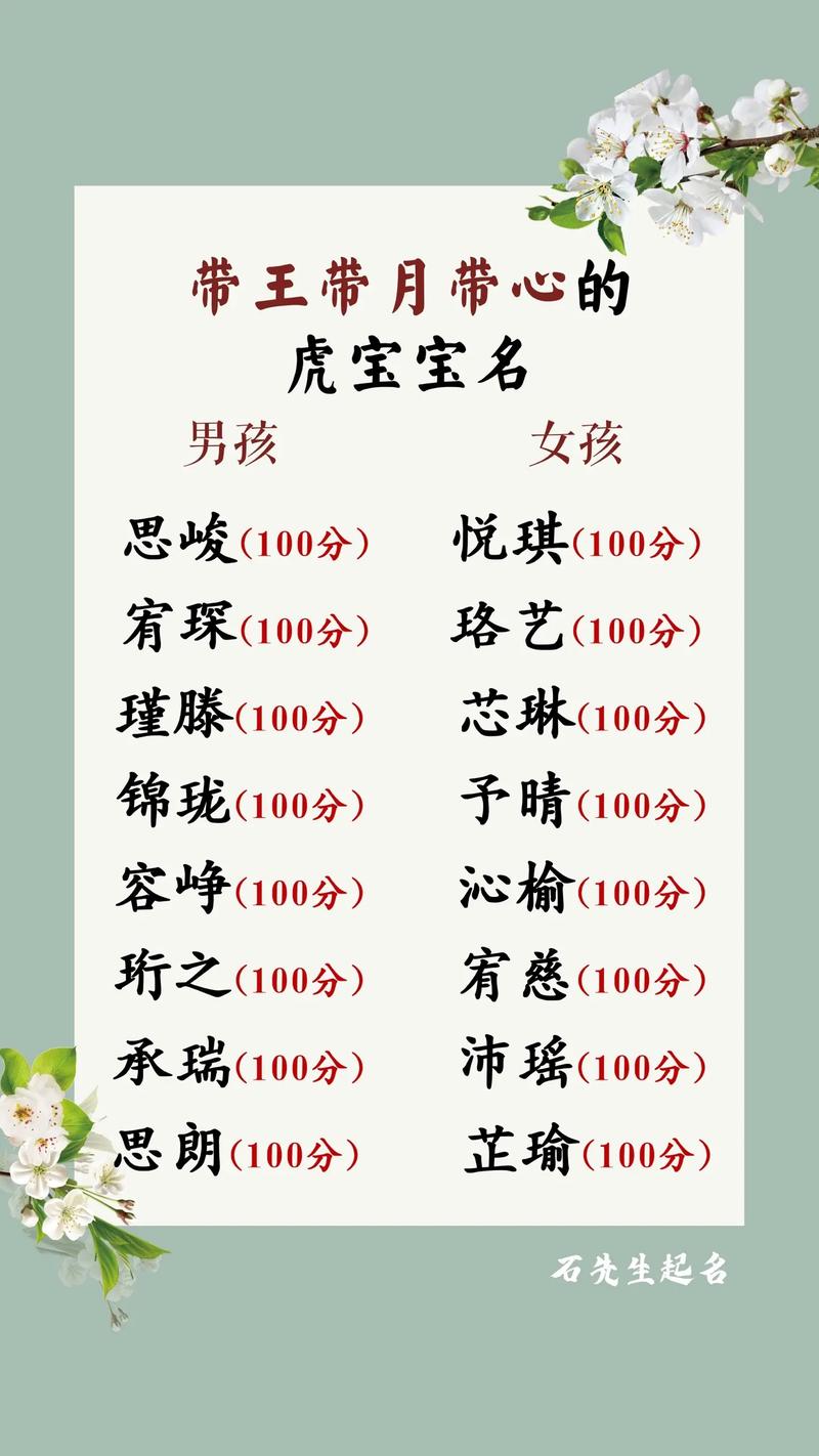 符合性別:雄虎起雄性名字,雌虎起雌性名字。