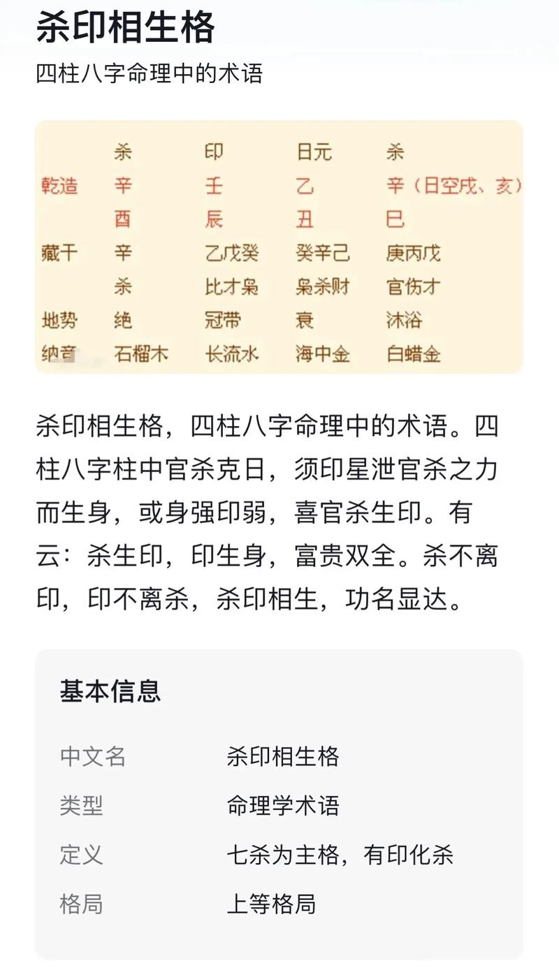 八字中,殺印相生是一種特殊格局,在女性命理中較為常見。殺星代表威嚴和果斷,印星代表智慧和包容。兩者相生互動,對女命的影響可謂吉兇參半。
