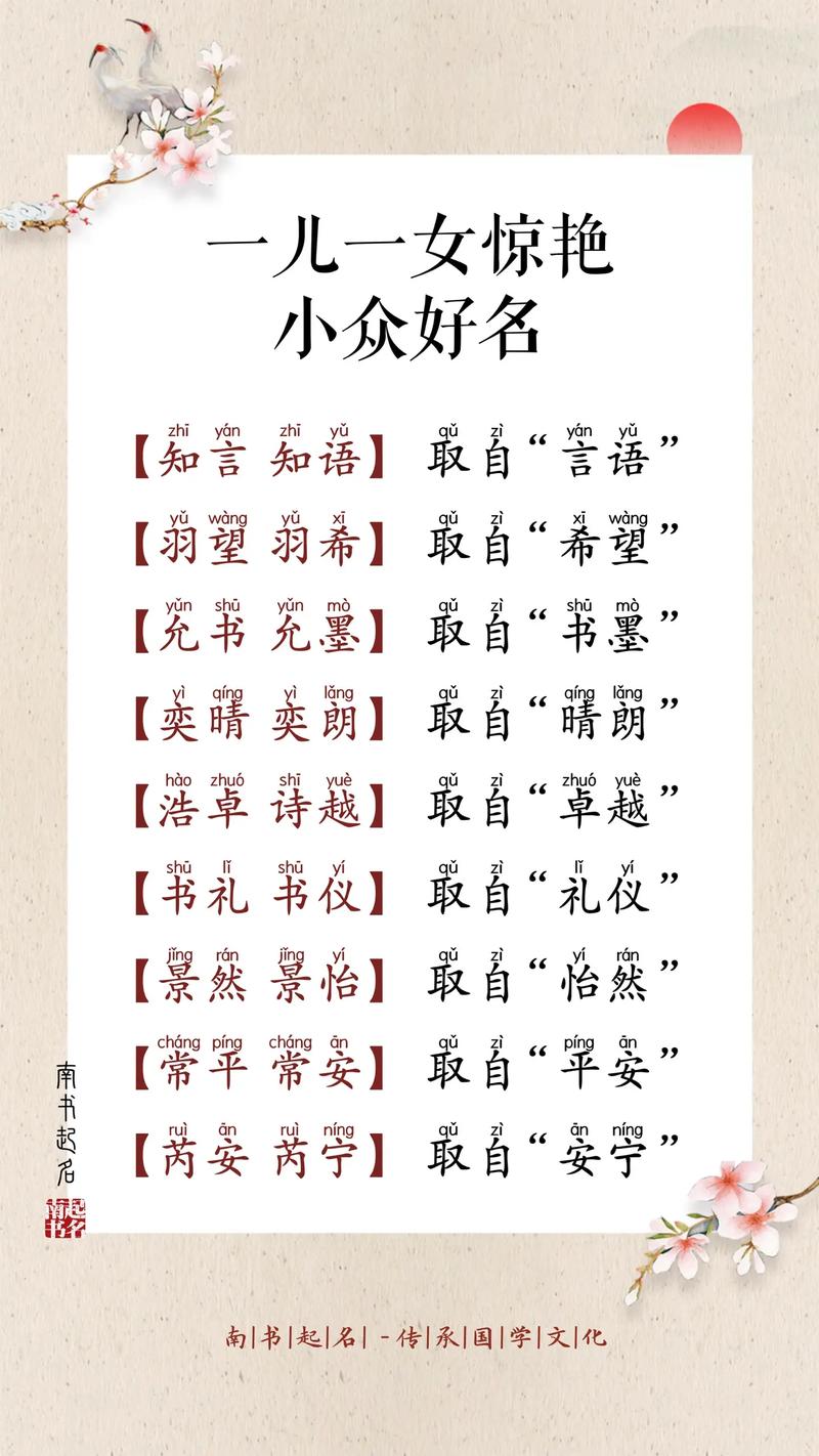 4. 考慮音韻美感:在挑選字時,還需要考慮字的音韻美感。好聽、朗朗上口的名字更容易讓人記住,也更有利于寶寶的人際交往??梢越Y(jié)合寶寶的性別、家族傳統(tǒng)等因素來選擇適合的字。