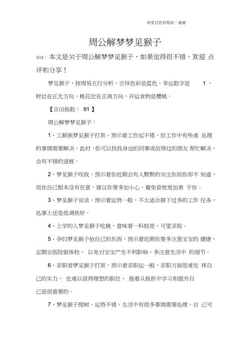 夢境中遇到死猴子,往往讓人感到不安。根據(jù)周公解夢的說法,死猴子在夢中有著不同的含義,需要根據(jù)夢境細節(jié)進行具體分析。