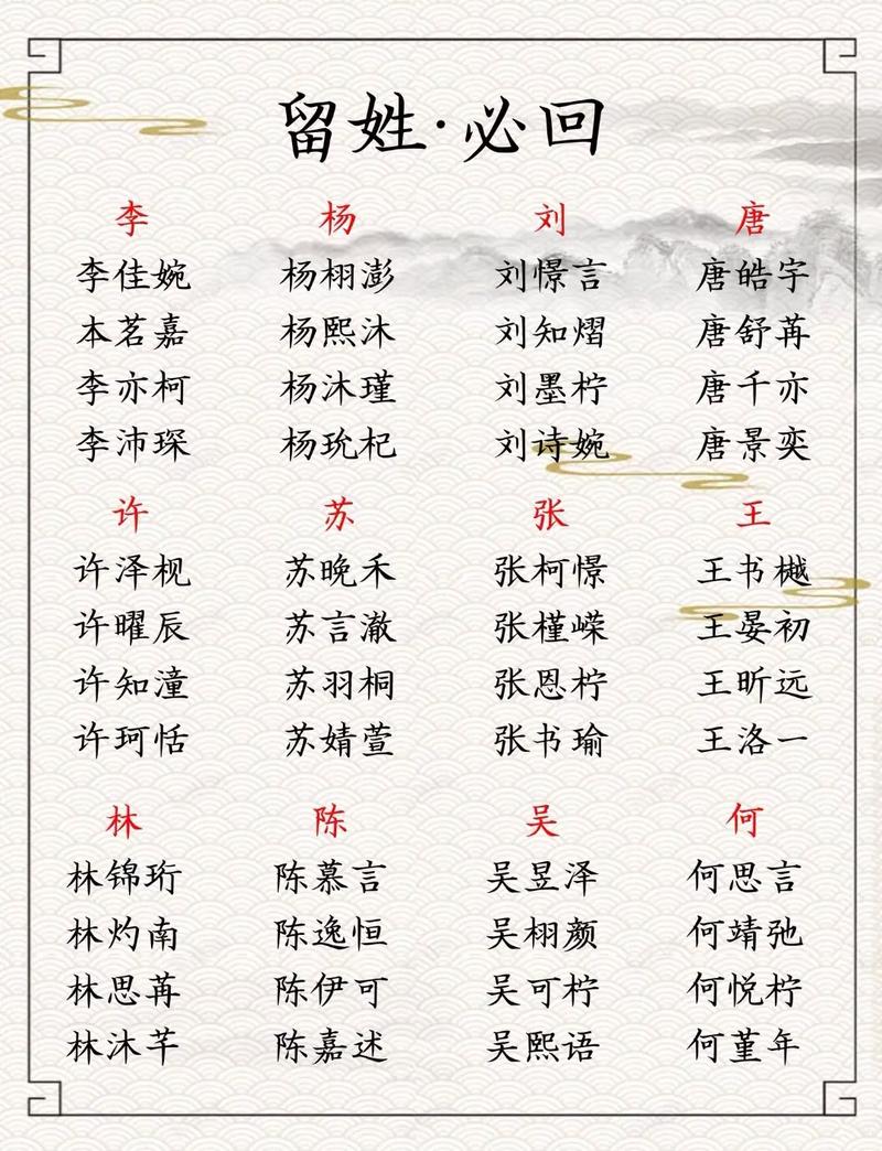 名字的寓意和音律同樣重要。選擇寓意吉祥、積極向上的字眼,如德、智、仁、勇、福等。音律應朗朗上口,避免諧音不雅或生僻難讀的字。