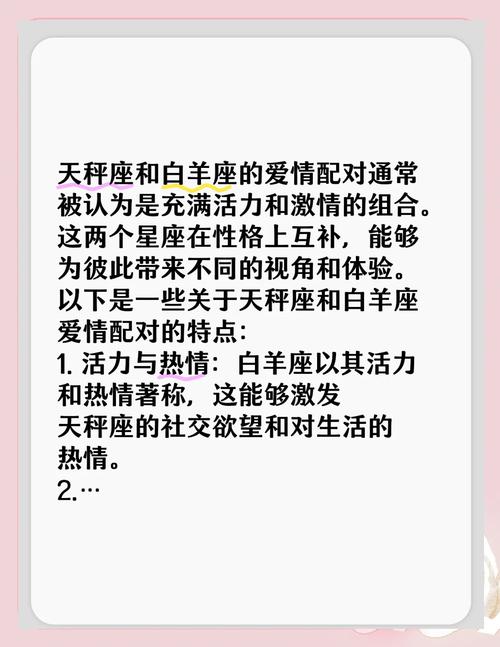 天秤座和白羊座在性格上各有獨(dú)特之處,以下是對這兩個(gè)星座性格特點(diǎn)的詳細(xì)分析: