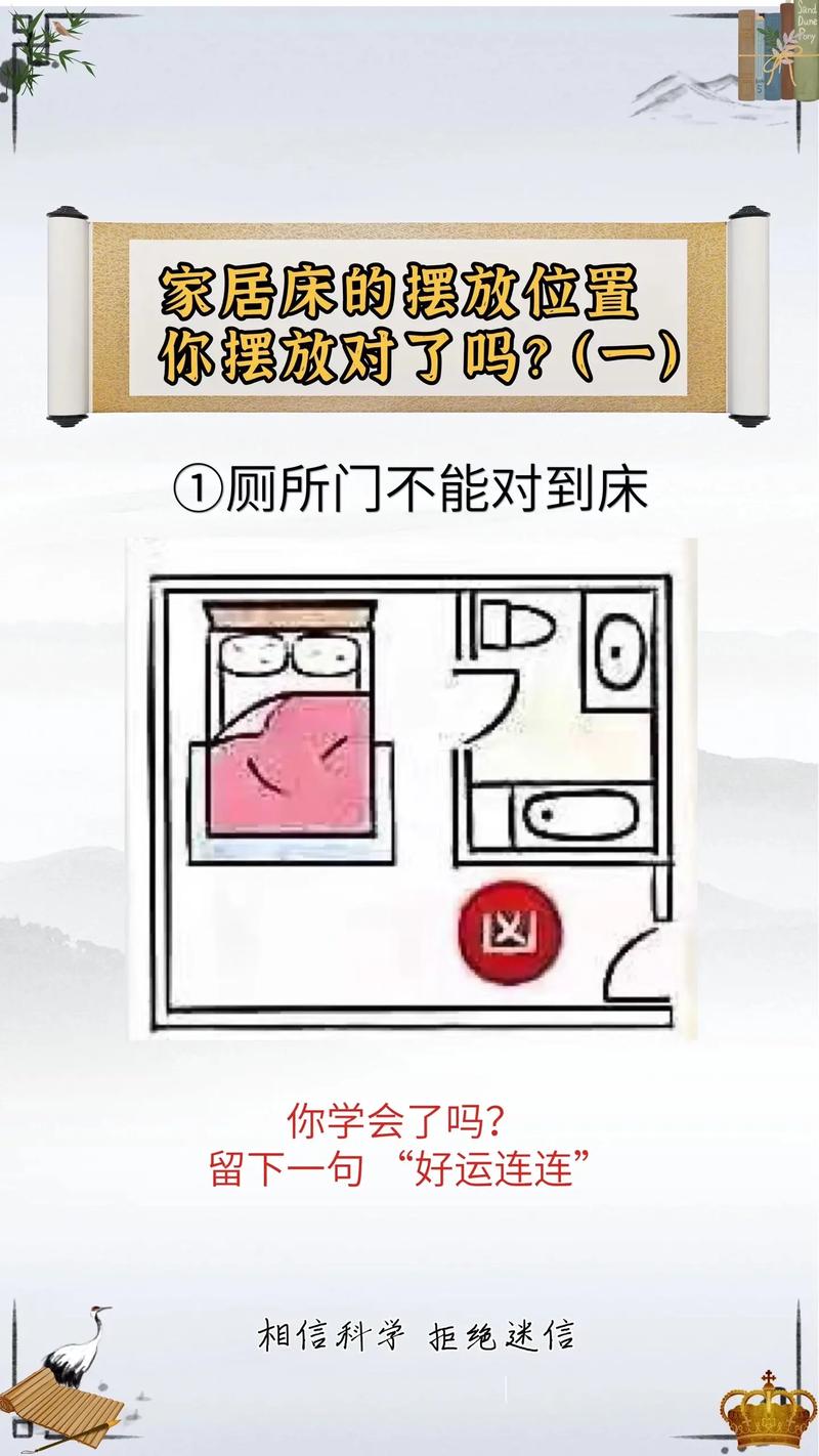 財(cái)運(yùn)問題:廁所對著床會導(dǎo)致家中的財(cái)運(yùn)流失,難以聚財(cái)。