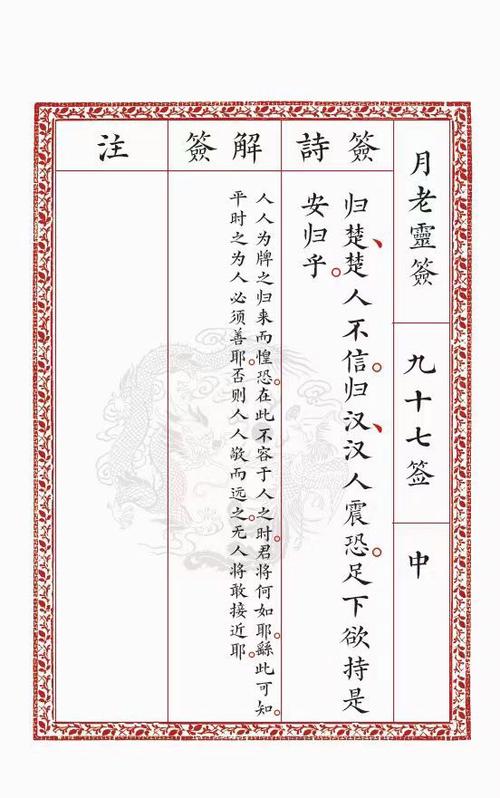 月老姻緣靈簽第29簽 月老靈簽姻緣簽39簽