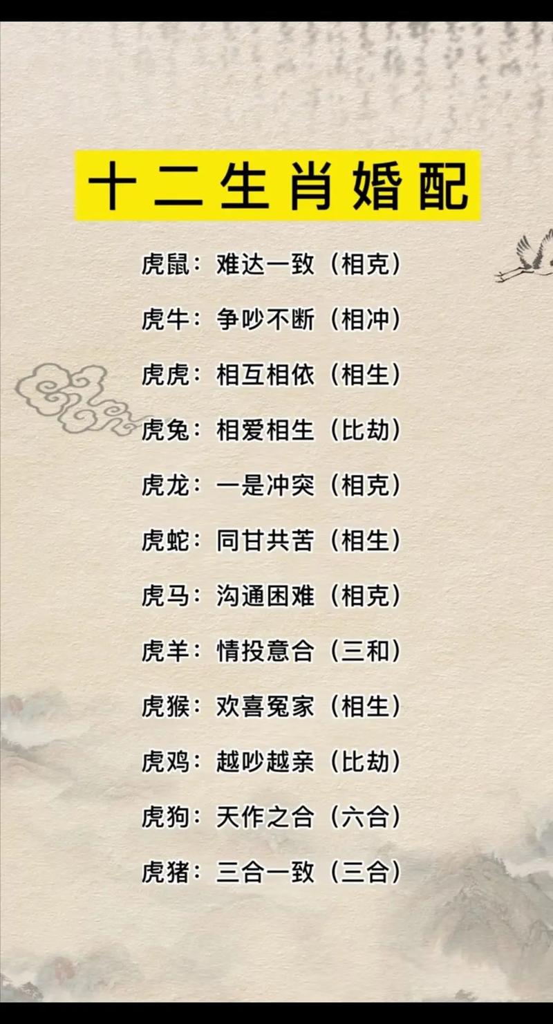 屬虎女性與屬馬男性:彼此個(gè)性獨(dú)立、思想活躍,能夠建立起充滿活力的戀愛關(guān)系。屬馬男性欣賞屬虎女性的自信和魄力,樂于跟隨其步伐;而屬虎女性也被屬馬男性的睿智和幽默所吸引。